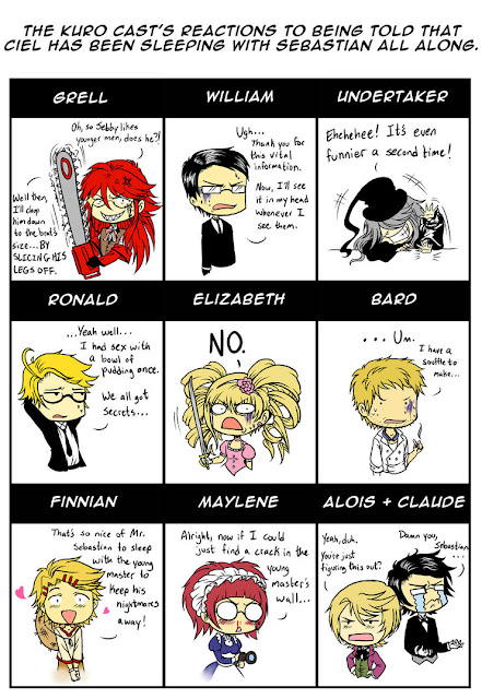 There were so many comments on this picture that were like,"Yay!! He's dead!!" Okay, I really didn't like Alois:Ask Demy. The kids a little shit. (Happy, kid? I used your favorite word) but I wasn't happy when he died. I felt bad for him, but that doesn't mean I like him. I don't think he's a slut either....